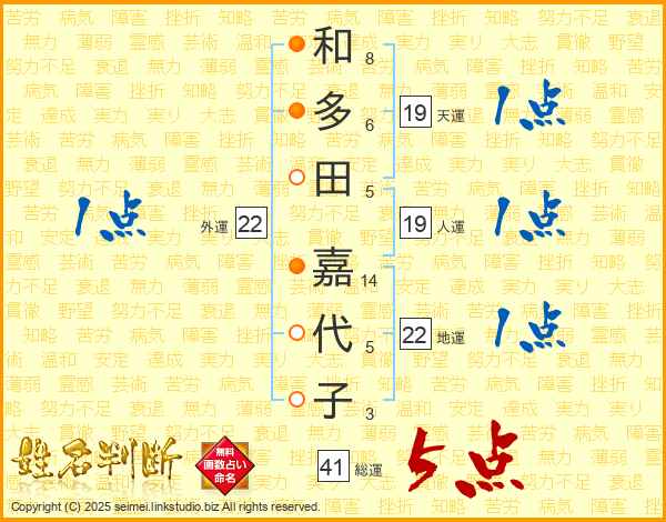 和(8画)多(6画)田(5画) 嘉(14画)代(5画)子(3画)