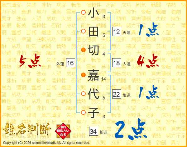 小田切嘉代子さんの総運は34画の2点!