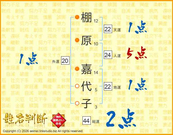 棚原嘉代子さんの総運は44画の2点!