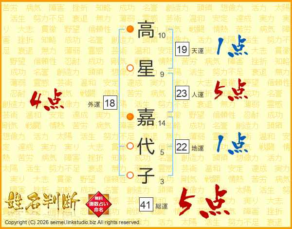 高星嘉代子さんの総運は41画の5点!