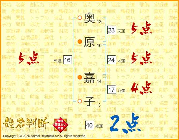 奥原嘉子さんの外運は16画の5点!