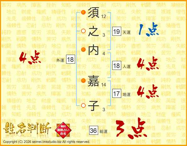 須之内嘉子さんの総運は36画の3点!