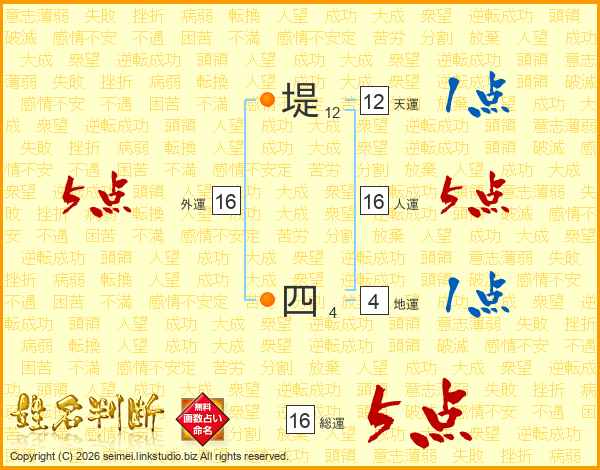 堤四さんの総運は16画の5点!