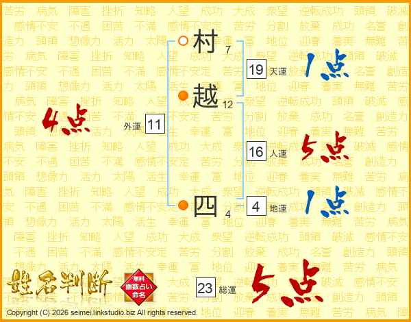 村越四さんの総運は23画の5点!