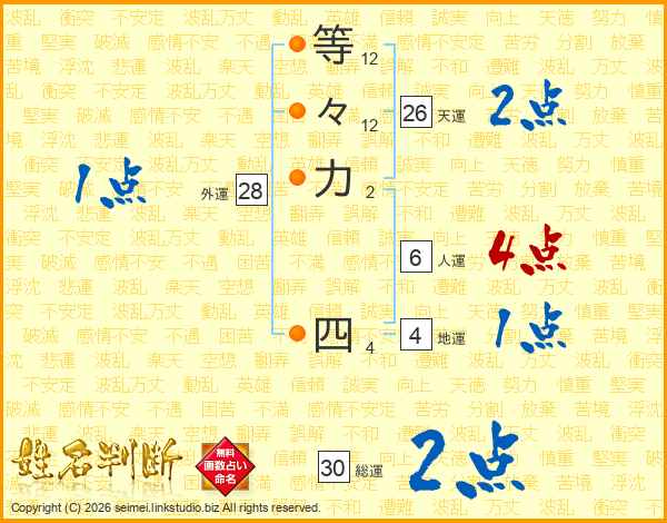 等々力四さんの天運は26画の2点!