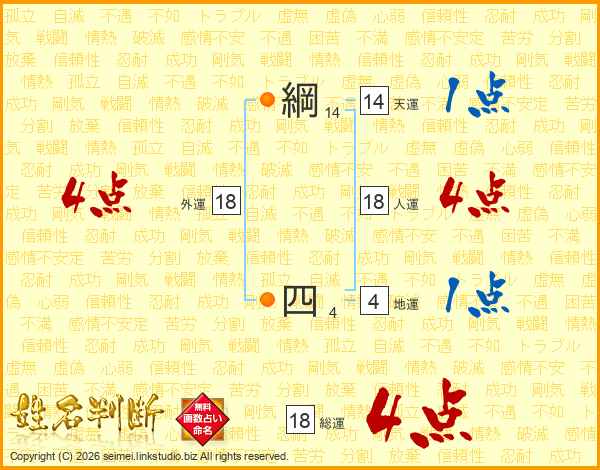 綱四さんの総運は18画の4点!