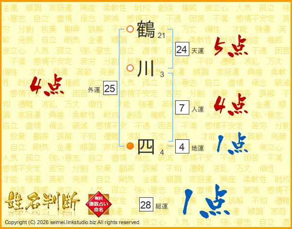 鶴川四さんの総運は28画の1点!