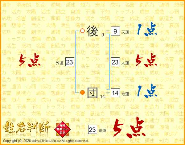 後団さんの人運は23画の5点!