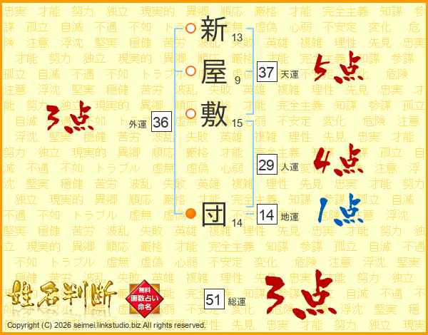 新屋敷団さんの天運は37画の5点!