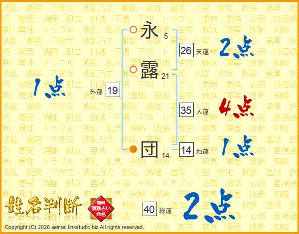 永露団さんの総運は40画の2点!