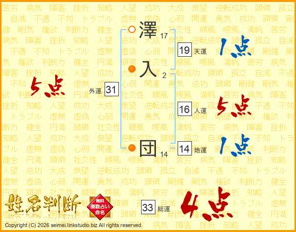 澤入団さんの総運は33画の4点!