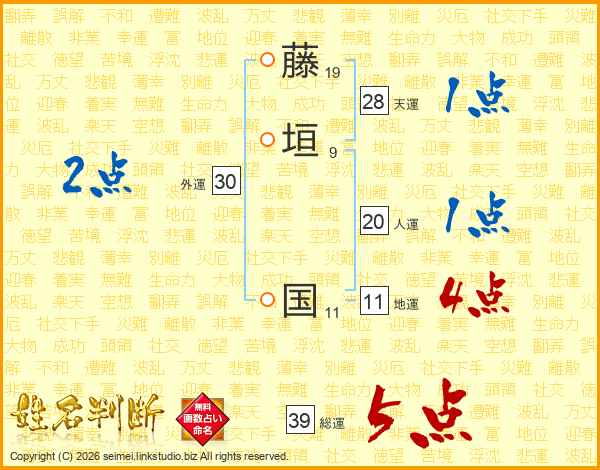 藤垣国さんの総運は39画の5点!