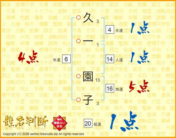 久一園子さんの総運は20画の1点!