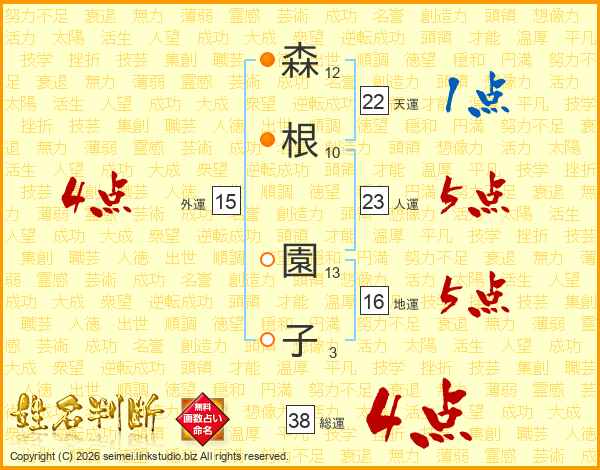 森根園子さんの総運は38画の4点!