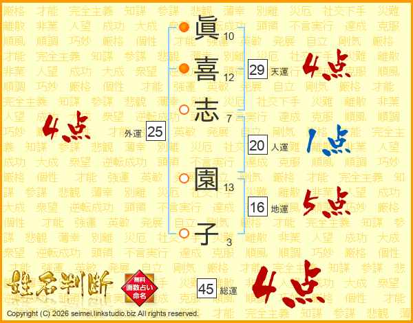 眞喜志園子さんの総運は45画の4点!