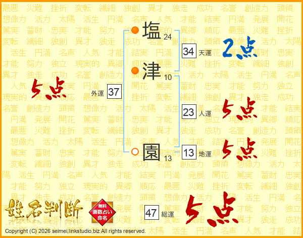 塩津園さんの総運は47画の5点!
