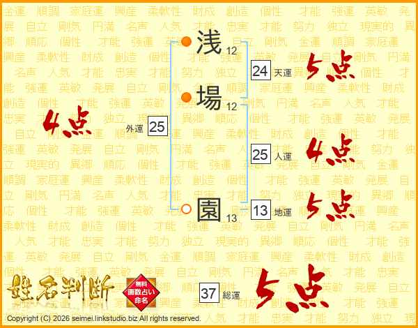 浅場園さんの総運は37画の5点!