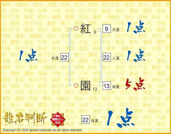 紅園さんの人運は22画の1点!