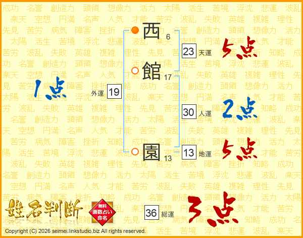 西館園さんの地運は13画の5点!