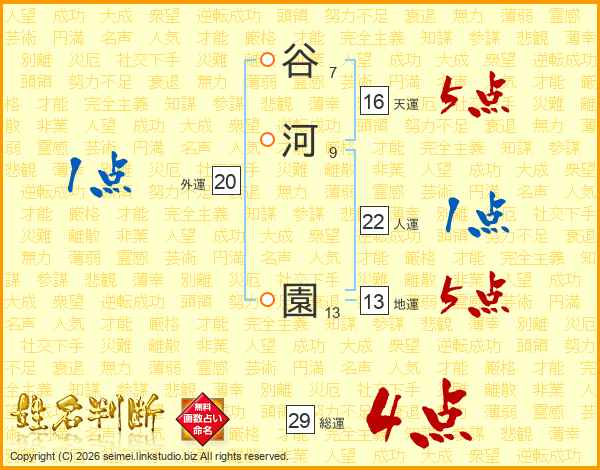 谷河園さんの人運は22画の1点!