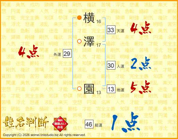 横澤園さんの総運は46画の1点!