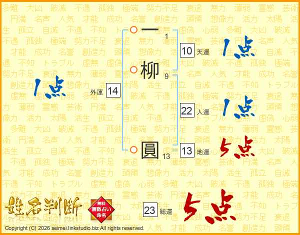 一柳圓さんの総運は23画の5点