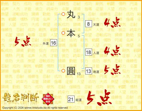 丸本圓さんの総運は21画の5点!