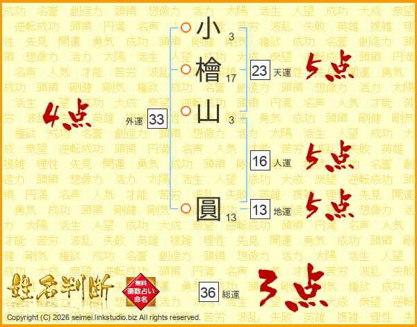 小檜山圓さんの外運は33画の4点!