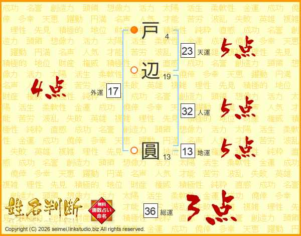戸辺圓さんの人運は32画の5点!