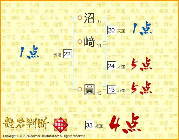 沼﨑圓さんの総運は33画の4点!