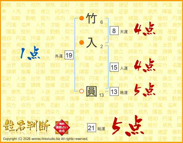 竹入圓さんの総運は21画の5点!