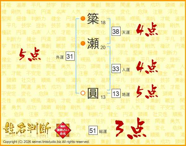 簗瀬圓さんの人運は33画の4点!