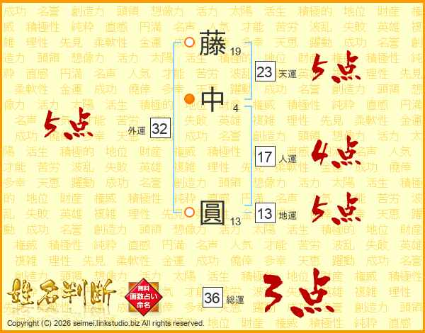 藤中圓さんの天運は23画の5点!