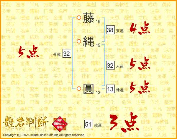 藤縄圓さんの天運は38画の4点!