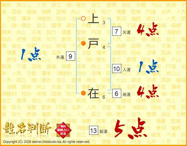 上戸在さんの総運は13画の5点!