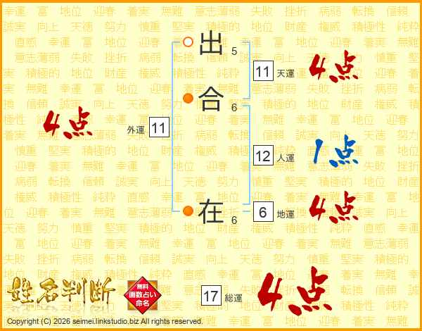 出合在さんの総運は17画の4点!