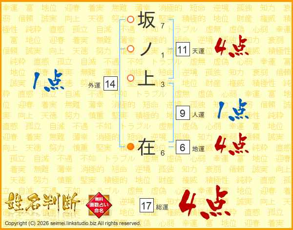 坂(7画)ノ(1画)上(3画) 在(6画)
