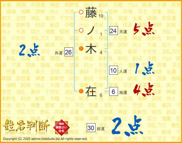 藤(19画)ノ(1画)木(4画) 在(6画)