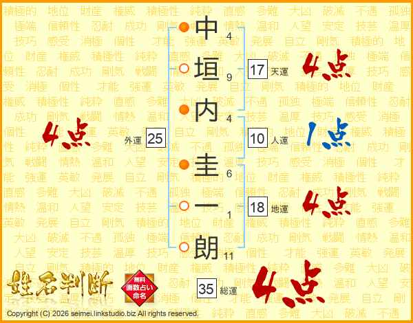 中垣内圭一朗さんの総運は35画の4点!