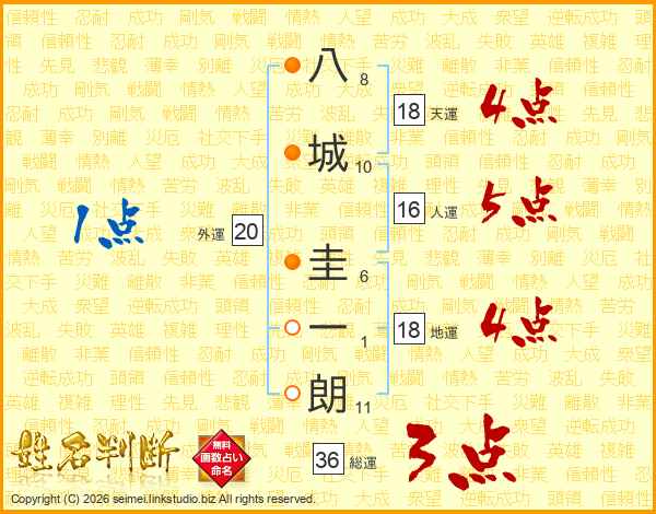 八城圭一朗さんの総運は36画の3点!