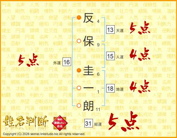 反保圭一朗さんの総運は31画の5点!