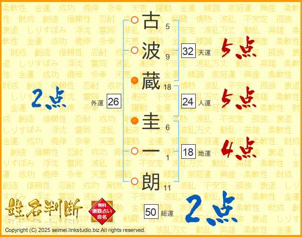 古波蔵圭一朗さんの天運は32画の5点!