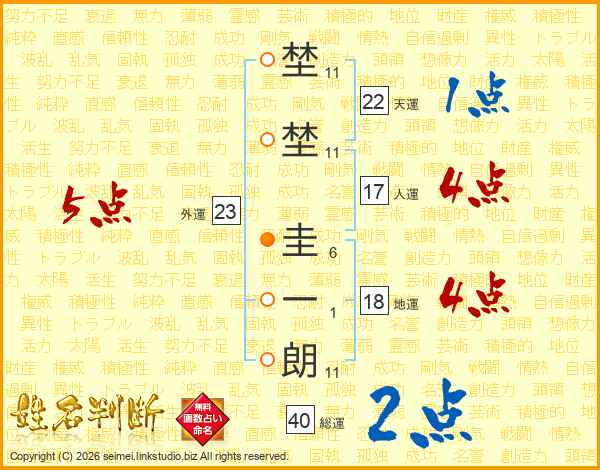 埜埜圭一朗さんの人運は17画の4点!