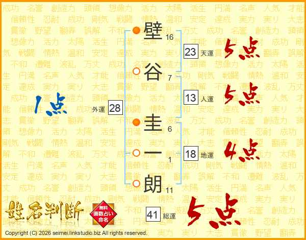 壁谷圭一朗さんの総運は41画の5点!