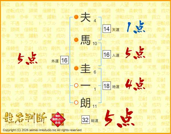 夫馬圭一朗さんの総運は32画の5点!