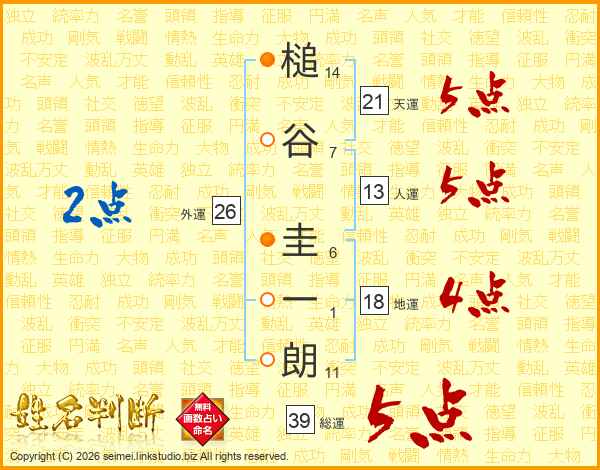 槌谷圭一朗さんの総運は39画の5点!