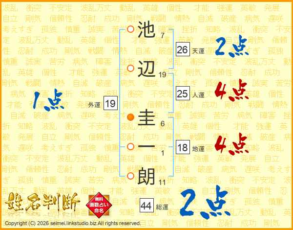 池辺圭一朗さんの天運は26画の2点!