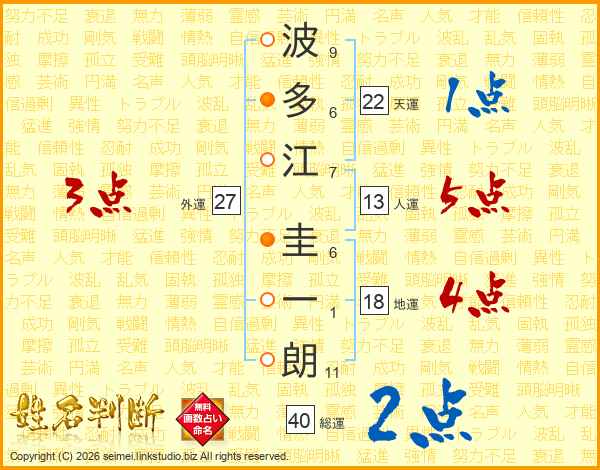 波多江圭一朗さんの総運は40画の2点!