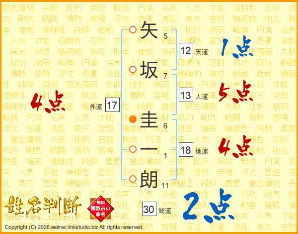 矢坂圭一朗さんの総運は30画の2点!