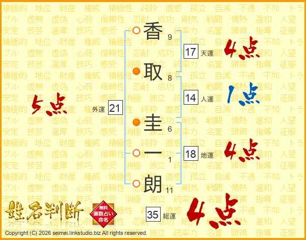 香取圭一朗さんの総運は35画の4点!
